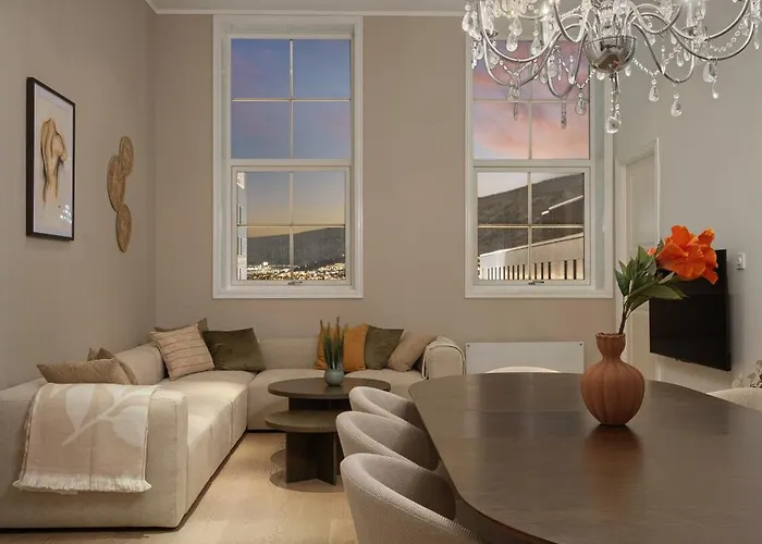 Το Nordic Luxury Suite Near Downtown Τρόμσο 97 τ.μ. Απέχει μόλις 13 λεπτά με τα πόδια από το Πολικό Μουσείο. Το διαμέρισμα διαθέτει βεράντα που βλέπει στη θάλασσα.
